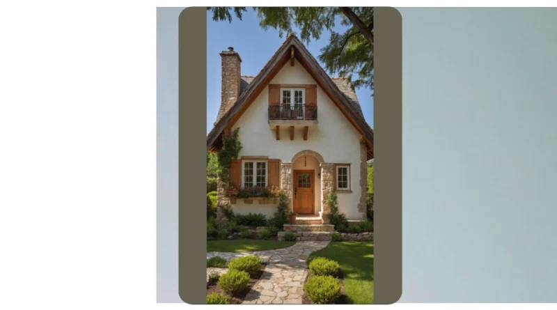 This gorgeous cottage home looks like it popped right out of a storybook, but one where the characters definitely have Wi-Fi and good snacks. It’s got that classic ‘cottage core’ vibe, but then it adds a few extra sprinkles of ‘wow’ with those arched windows and ornate balconies. Honestly, someone probably lives here who practices their dramatic balcony poses daily, ready for their grand entrance (or just to shout for the mail). And check out that roof! With its steep gables and timber details, it’s basically wearing a fancy, pointy hat – probably for important cottage business, like looking super charming.