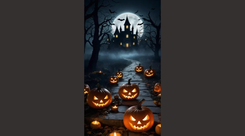Those jack-o’-lanterns aren’t just sitting there; they look like they’re having a full-blown pumpkin party, probably whispering all the spooky secrets about that shadowy castle in the background! You can almost hear their glowing grins chuckling as they light up the misty path, daring you to come closer. And those bats fluttering near the giant moon? They’re clearly just on their way to the castle for a midnight snack, maybe hoping someone left out some candy corn. It’s the perfect scene to make your phone feel like it’s celebrating Halloween every single time you check it.