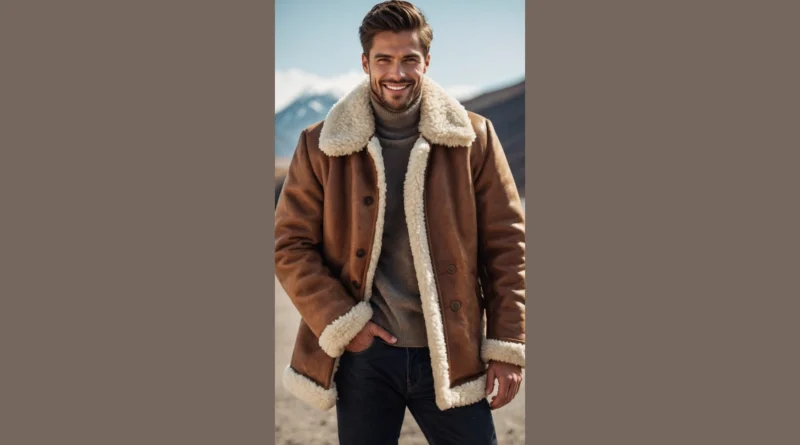 This guy clearly got the memo that “cozy” can also mean “super stylish” when it comes to winter wear! He’s rocking a men’s shearling coat outfit that looks so incredibly warm, you could probably nap in a snowdrift and still be toasty. With that fluffy, sheepskin lining peeking out, it’s like he’s wearing a giant, fashionable hug that just happens to make him look like a movie star ready for an epic adventure in the mountains. You can practically feel the warmth radiating from the picture, making you want to ditch your thin jacket and snag one of these bad boys.