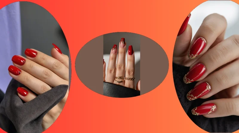 And can we take a moment for those absolutely stunning gold details? It’s like tiny, enchanted vines decided to delicately wrap around your nails, adding a touch of regal magic that’s beyond next level. You’ll be reaching for your phone or just casually gesturing, and everyone around you will secretly (or not-so-secretly) be gawking at your fabulous, cherry-red tips adorned with what looks like melted gold. Get ready for all the compliments, because these nails are practically a work of art, destined to make everyone else a little bit jealous (in the most admiring way, of course!).