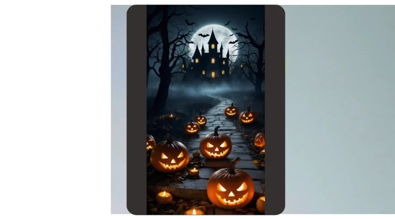 Those jack-o’-lanterns aren’t just sitting there; they look like they’re having a full-blown pumpkin party, probably whispering all the spooky secrets about that shadowy castle in the background! You can almost hear their glowing grins chuckling as they light up the misty path, daring you to come closer. And those bats fluttering near the giant moon? They’re clearly just on their way to the castle for a midnight snack, maybe hoping someone left out some candy corn. It’s the perfect scene to make your phone feel like it’s celebrating Halloween every single time you check it.
